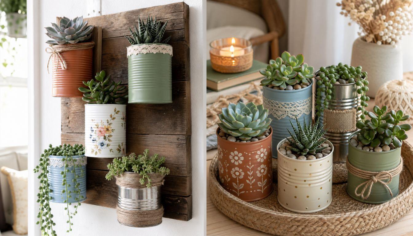 Avec ces bases, chaque boîte devient un petit paysage. Une conserve oubliée se transforme en pot délicat. Une mini-succulente devient une sculpture vivante. Et votre décoration gagne ce charme rare des objets simples, faits avec attention.