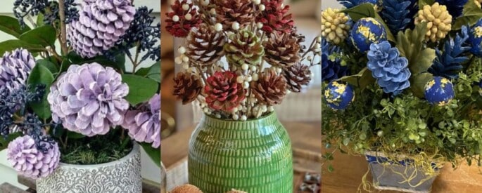 Arrangements floraux avec des pommes de pin